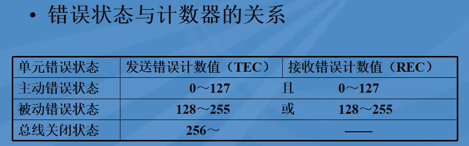 被动错误单元即使检测到错误,而其他处于主动错误的单元如果没发现错误,整个总线也被认为是没有错误的。