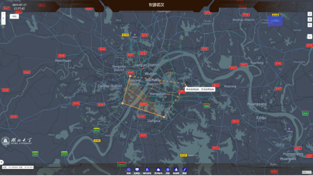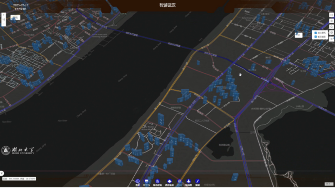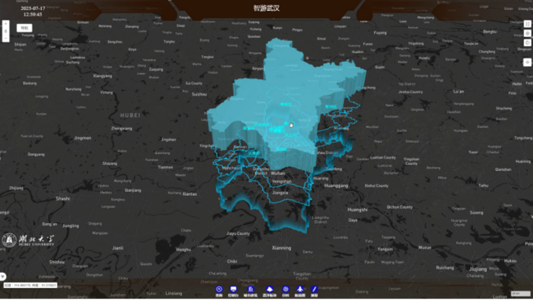 利用三维地图和建筑渲染技术,真实还原武汉城市空间结构,提升旅游资源展示的沉浸感和科技感。