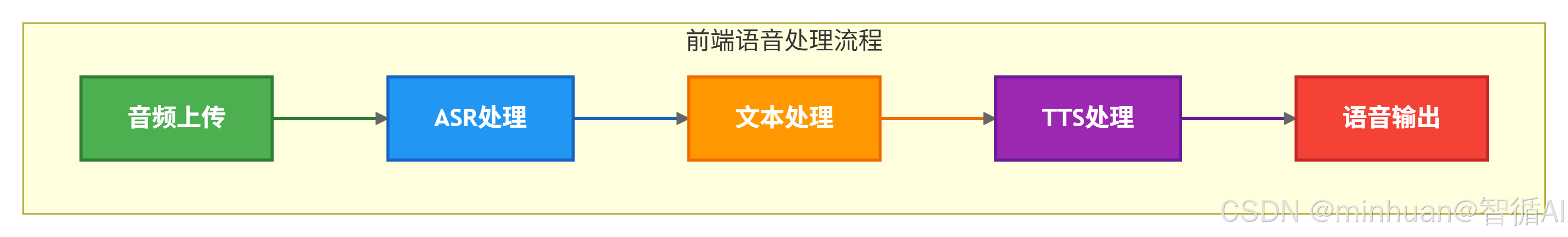 - 前端操作:用户通过浏览器点击 "开始录音",Web Audio API 获取麦克风权限,录制语音并生成 WAV 格式音频;