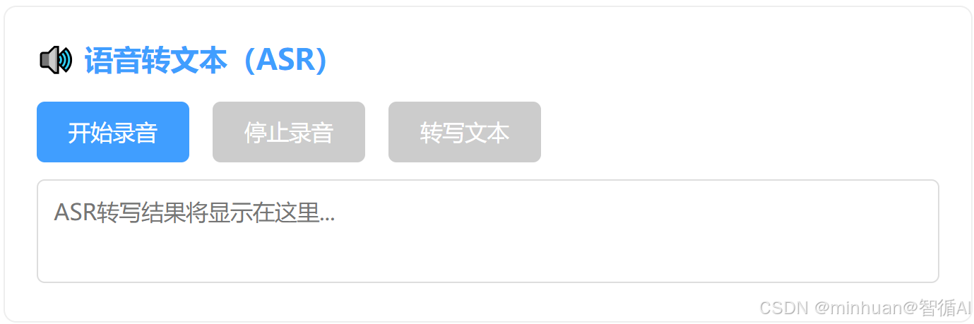 - 音频上传:前端将录音文件通过 FormData 格式上传到后端 ASR 接口;