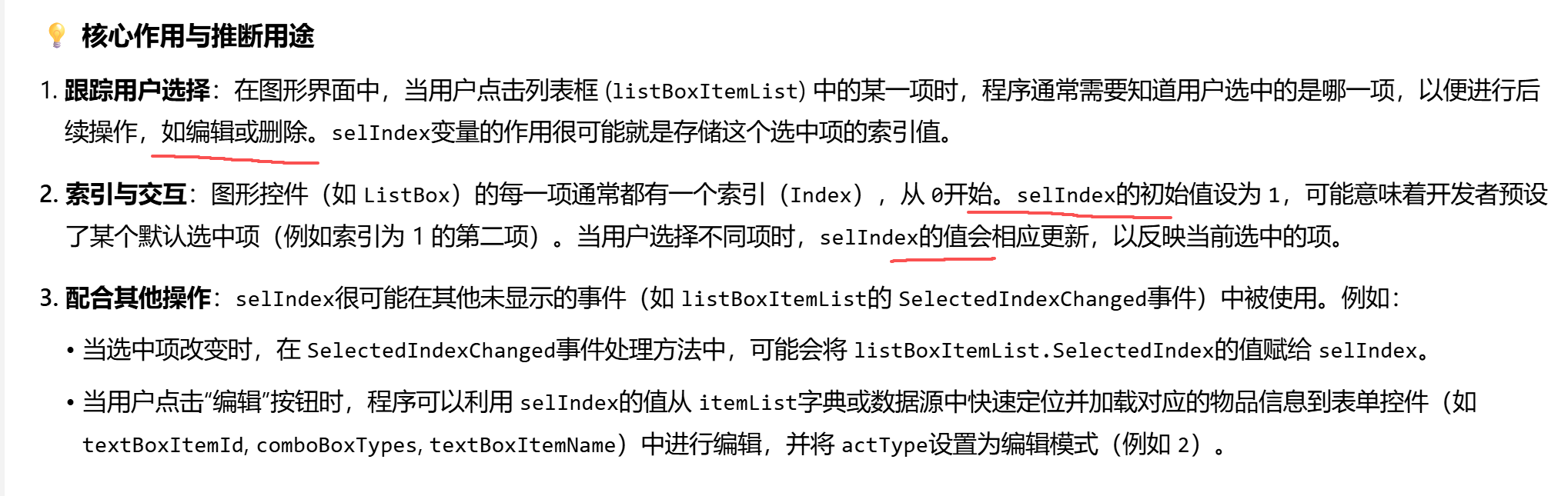 selIndex(选中索引):像您的手指,指向当前选中的是左侧列表中的第几个物品。