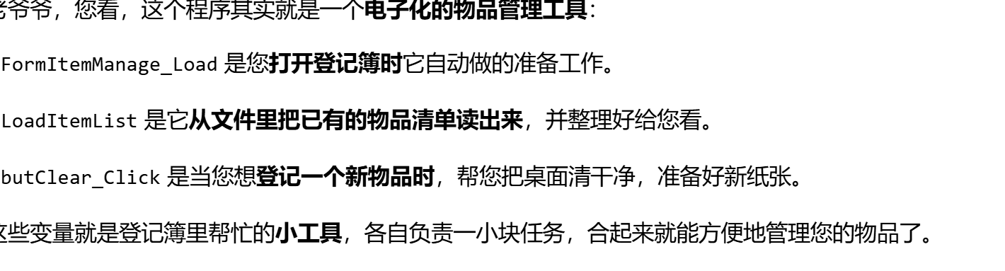 itemList(物品列表):是一个快速检索盒(Dictionary<int,string>)。它把物品ID和对应的完整信息关联起来。当您在左侧列表中点选一个物品时,程序能立刻从这个"盒子"里找到所有信息,而不必重新去翻文件。