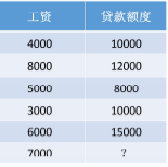 现在有一个案例,自变量为工资,因变量为贷款额度