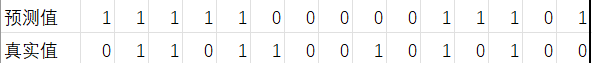 例如假设要对15个人预测是否患病,使用1表示患病,0表示正常,预测结果如下: