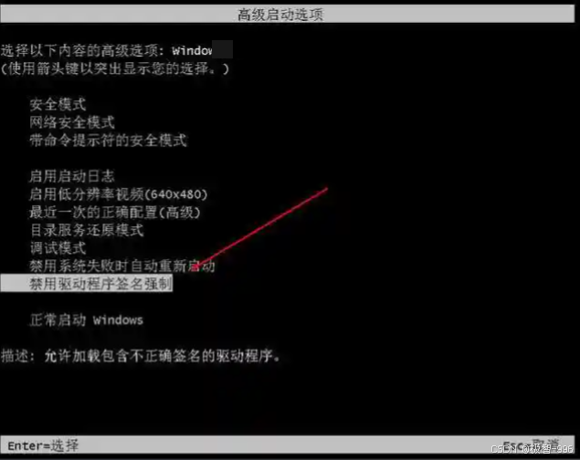 (2)选择禁用驱动签名强制:
