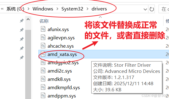 这是核心步骤!找到匹配的 amd_xata.sys 文件替换损坏的,让系统重新认可,问题就能彻底解决!