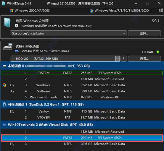 四、用 WinNTSetup 安装系统到 VHDX