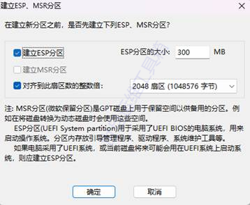 要在建立ESP分区打勾