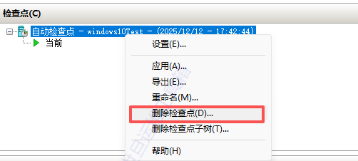 Hyper-V 默认会自动创建一个检查点,要右键 - 删除检查点,注意是删除"自动检查点",而不是删除"当前"