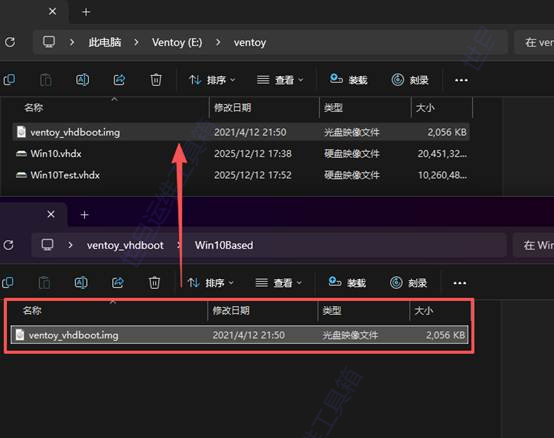 (4)下载了ventoy_vhdboot之后,解压压缩包,把Win10Based内的img文件一起放进去