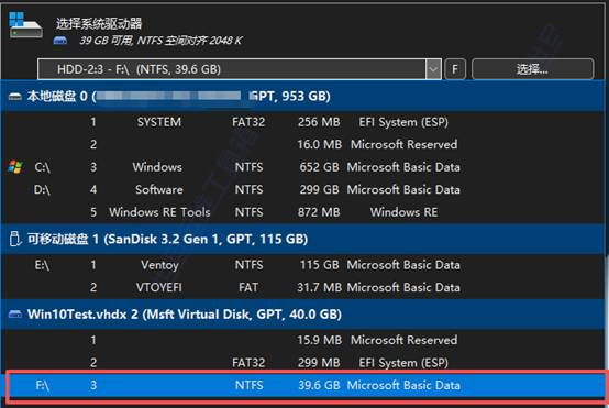 (2)选择引导驱动器,这一步下拉列表有很多选择,要选择虚拟硬盘的ESP分区