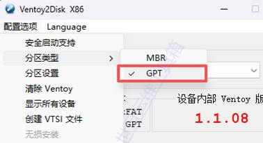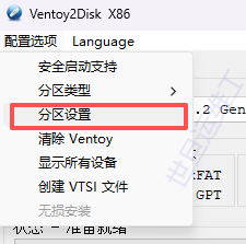 (2)点击配置选项,推荐分区类型为GPT