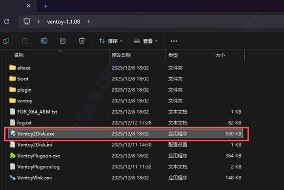 (1)解压下载的ventoy-1.1.08-windows.zip,打开ventoy2Disk.exe