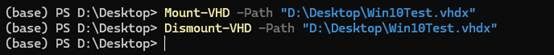 Powershell:Mount-VHD -Path "D:\Desktop\Win10Test.vhdx"