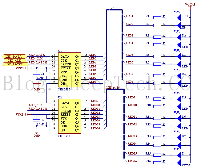 74HC595是具有8位移位寄存器和一个存储器,三态输出功能。
