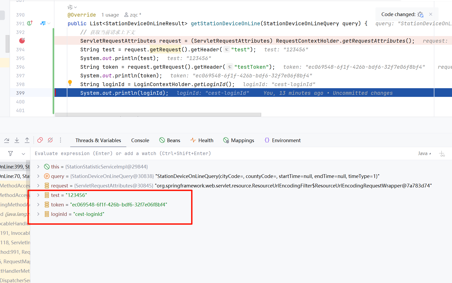 // 将获取到的测试token添加到请求头中,供下游服务测试使用