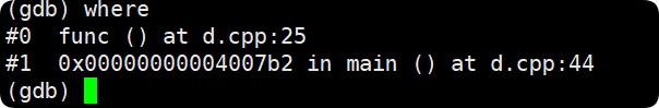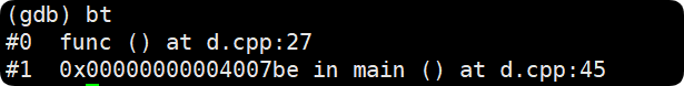breaktrace(或bt):查看各级函数调用及参数