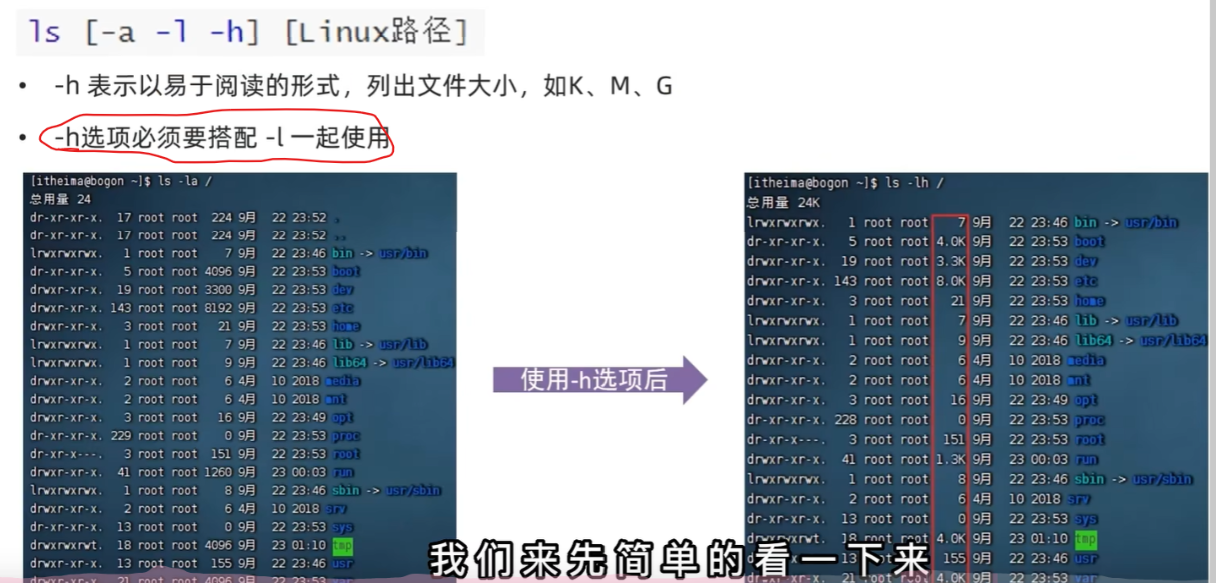 -h(humam-readable必须与-l一起使用)