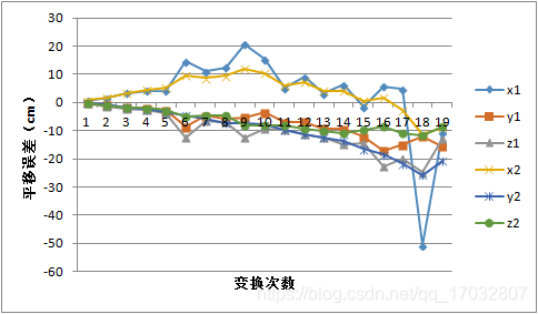 对于EPnP算法而言,其前20帧的误差变化如下所示: