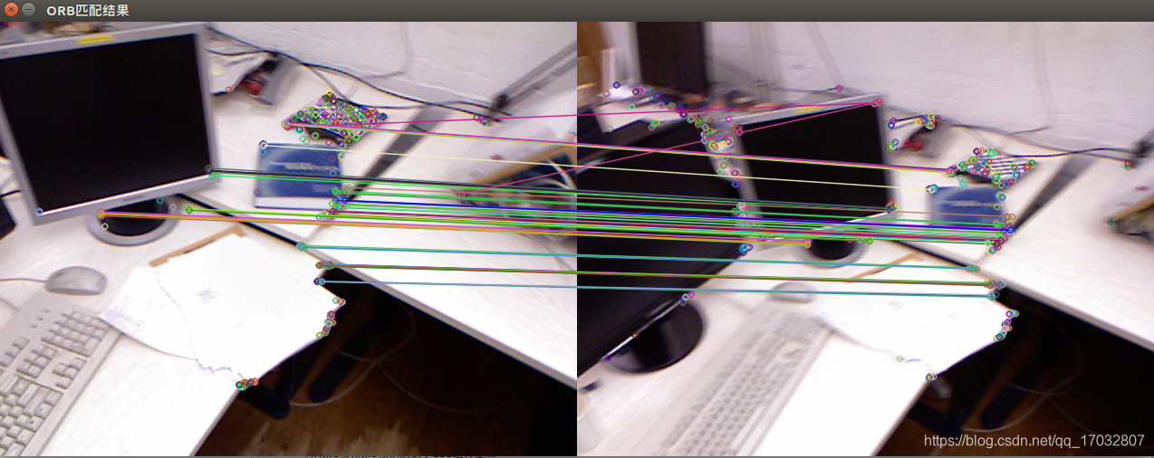 很明显,ORB算法出现了误匹配,就比如那两个呈三角形堆放盒子上的特征点所引出的绿线。而反观之前的5帧,其特征点匹配线还是相当平齐的,大家可以后续试一下,有一个直观的感受。