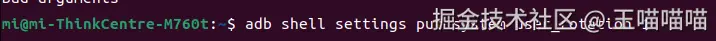 命令settings表示直接操作手机设置,手机里很多设置项都可以使用 get 获取对应的值 put 设置对应的值