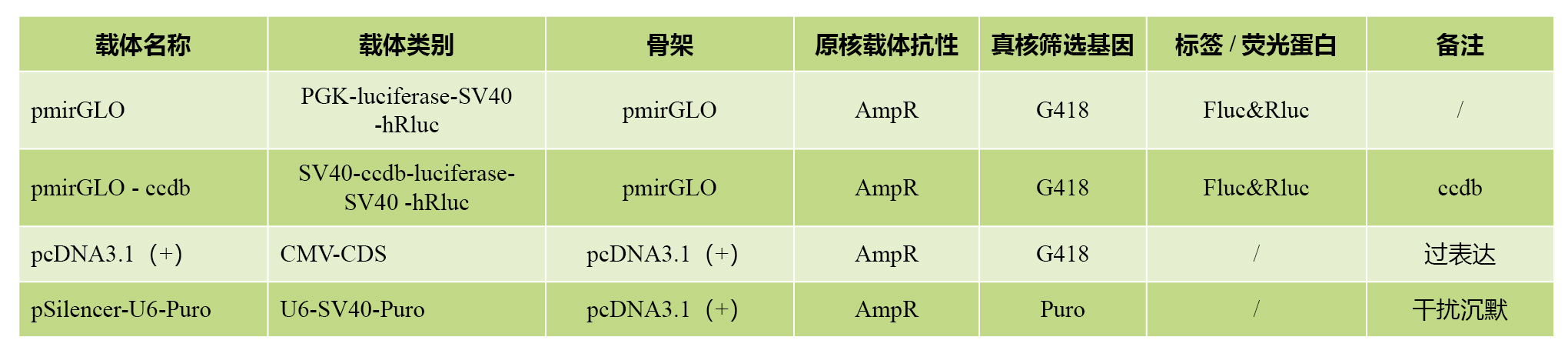 我司原始细胞双荧光素酶报告系统载体列表,可根据不同的需求,选择不同的载体,插入不同的位置