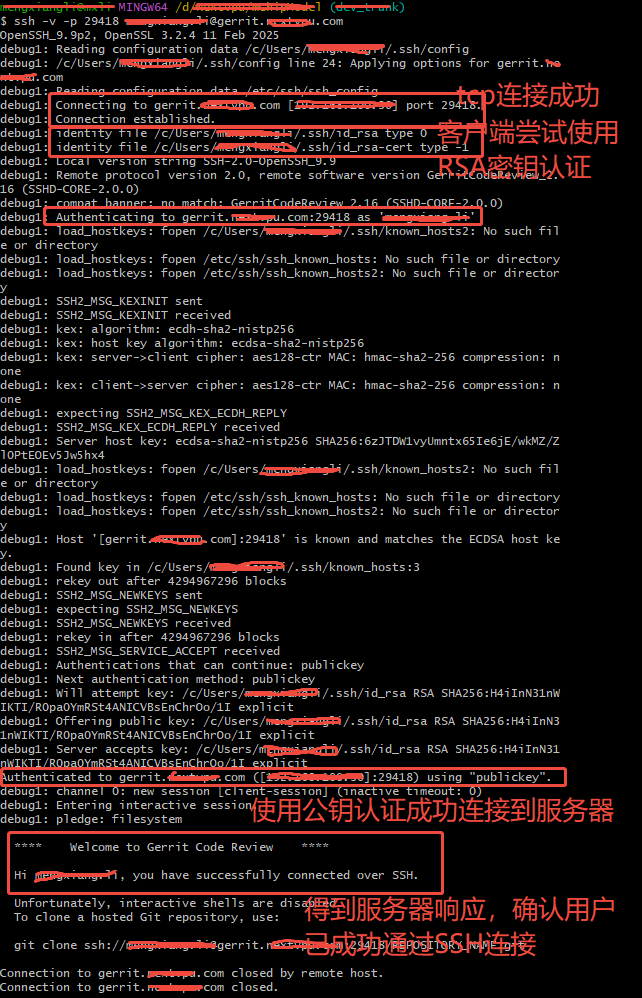 执行ssh -v -p 29418 git@host.com后返回: