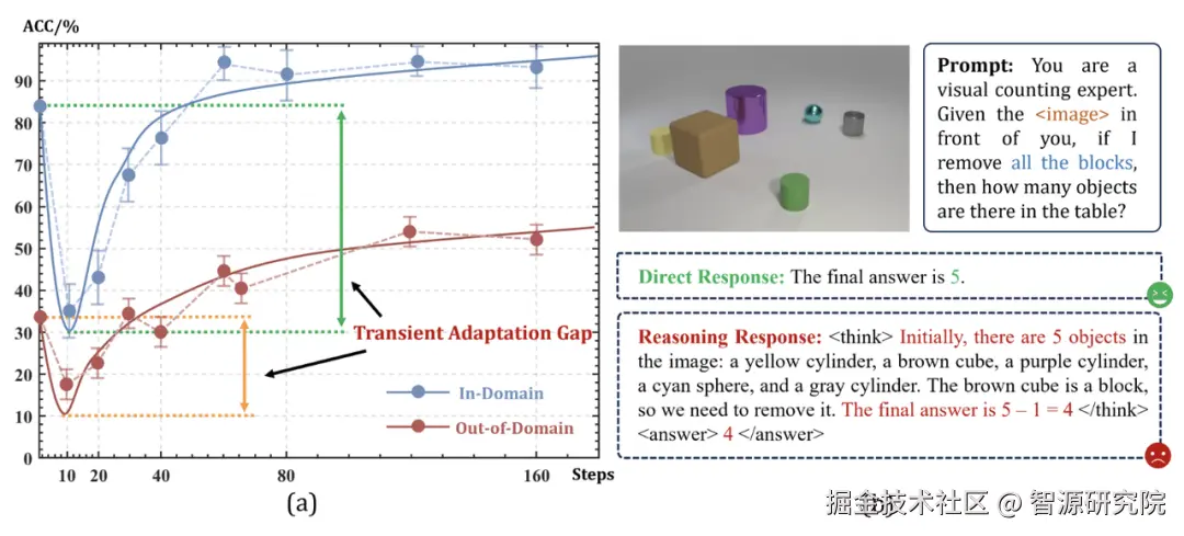 尽管近年来视觉语言模型(VLM)取得了显著进展,但现有模型在复杂视觉推理任务上的泛化能力仍面临严峻挑战。当前主流的"思维链"(Chain-of-Thought, CoT)监督微调方法,往往让模型停留在对特定推理模板的"记忆",而非真正掌握底层机制:一旦换成新场景、新视角或新的任务组合,性能便明显下滑,难以满足在自主机器人等具身智能场景下对可靠性和鲁棒性的要求。