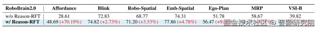 从结果可以清晰看到,Reason-RFT 作为 RoboBrain 2.0 的后训练模块,带来了三方面的显著收益: