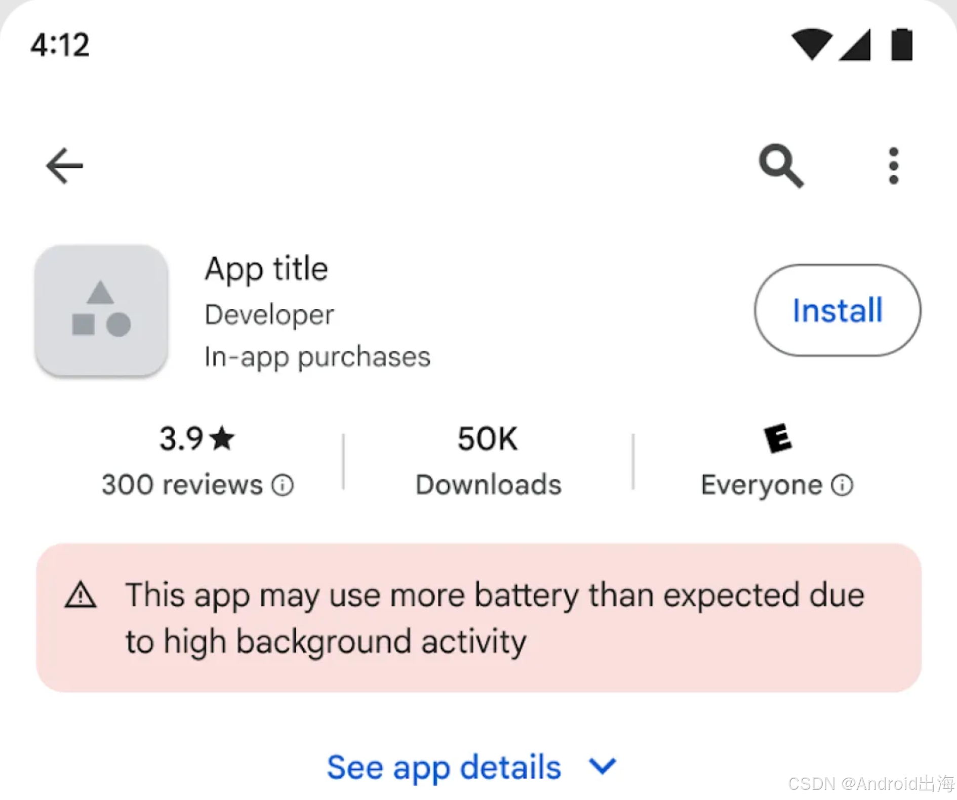 关于后果,违规 App 将在其 Google Play 应用详情页面展示电池消耗警告标签,且可能失去在推荐、精选等关键发现面板的曝光机会,从而影响新用户的安装决策与下载量。