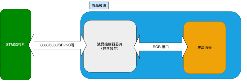 对于MCU接口的LCM(LCD Module),其内部的芯片就叫****LCD驱动器,****都带GRAM(显存)。主要功能是对主机发过的数据/命令,进行变换,变成每个像素的RGB数据,使之在屏上显示出来。