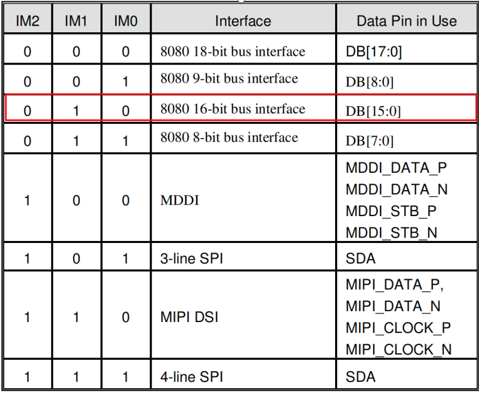 - 1并行CPU数据总线接口,支持8位、9位、16位和18位。