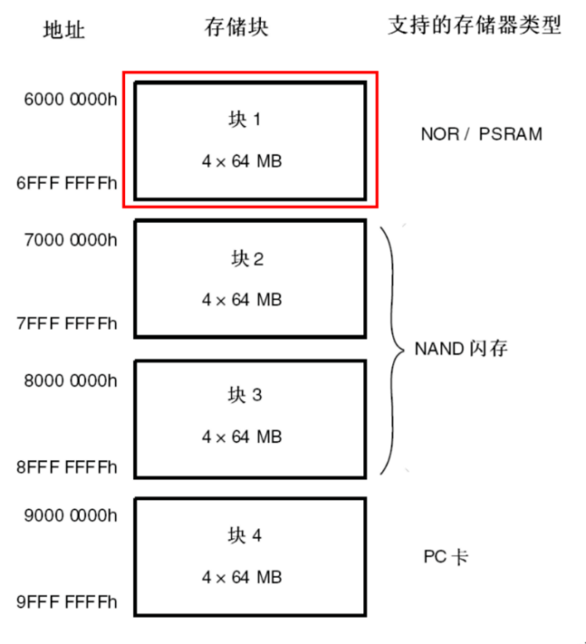 扩展LCD的时候,使用的是块1的地址,一共4*64MB = 256MB。
