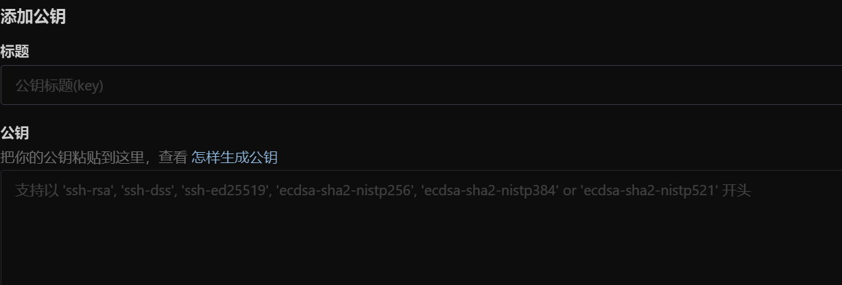 点击进去之后,在下图展示信息处填写信息(标题自定义,公钥处粘贴刚刚复制的内容即可)