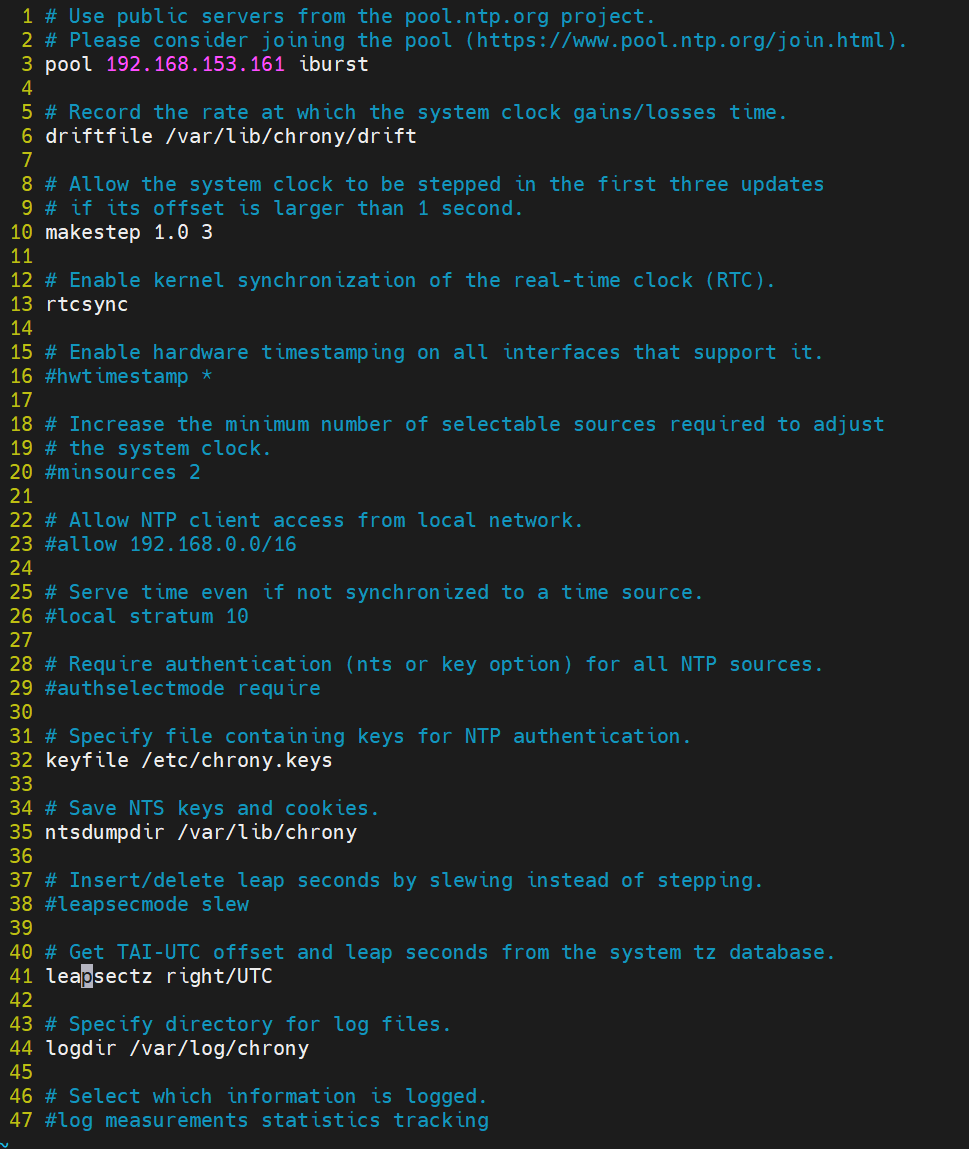 修改行数3、32、41行内容,其中3行要修改我时间同步服务器ip,这里是master1ip