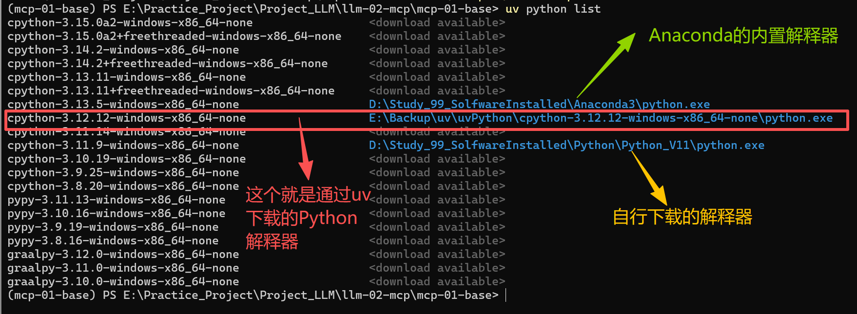 查看已安装版本: uv python list