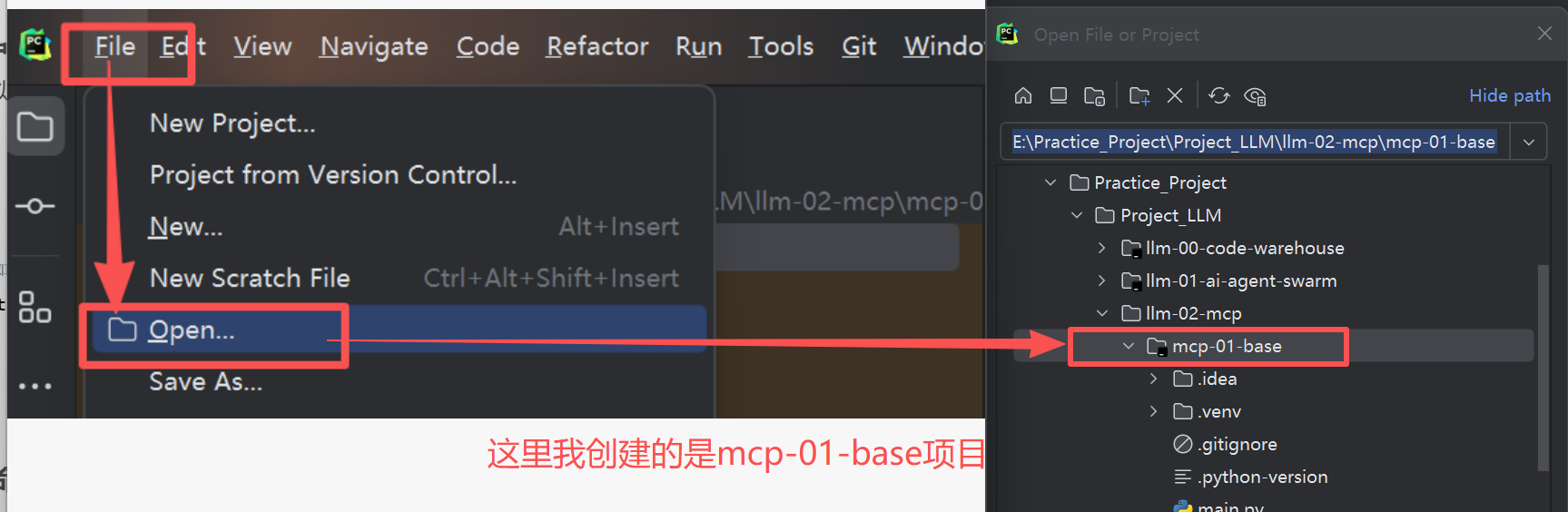 4.4 将创建好的项目在PyCharm中打开