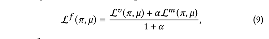 L𝑣 (𝜋, 𝜇) 表示视觉笔记嵌入的损失。类似地,可以得出 L𝑚 (𝜋, 𝜇),即多模态笔记嵌入的损失。最终损失的计算方式如下: