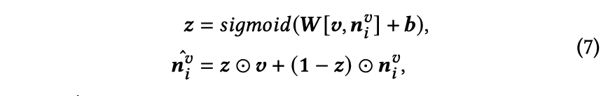 其中, 表示融合后的视觉笔记嵌入。[·,·] 表示拼接操作,𝑾 和 𝒃 是可学习参数。⊙ 表示逐元素乘积。类似地,通过相同的门控操作可以得到融合后的多模态笔记嵌入