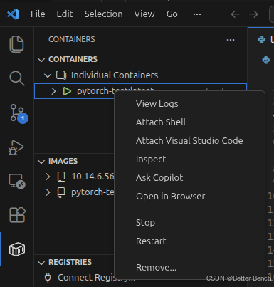 然后重启Vscode就可以在Containier 插件中看到运行的docker镜像,右键选中 Attach shell就会打开docker下的终端,此时就是正常的开发环境,docker开发环境配置完成。