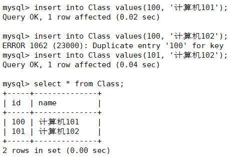 可以看到:被主键修饰的字段,不能重复,也不能为空。
