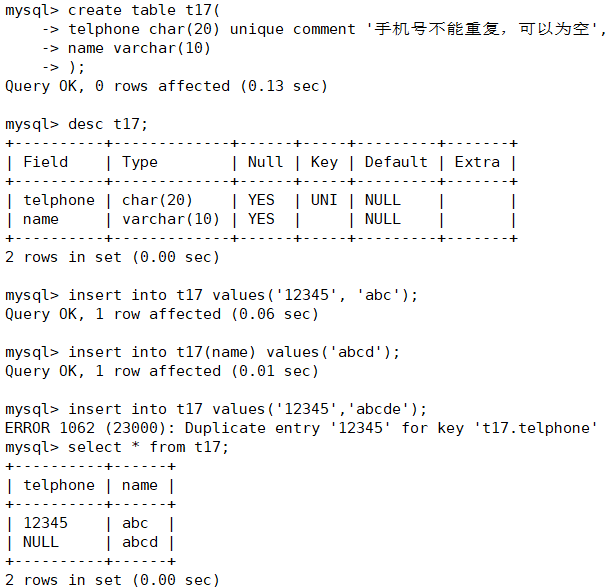 唯一键的本质和主键差不多,唯一键允许为空,而且可以多个为空,空字段不做唯一性比较。