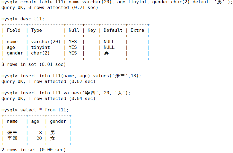 在某种情况下,一些数据会经常是某个具体的值;像这样的数据可以一开始就给定,插入数据时可以选择忽略,自动设置为默认值;如果具体给出,那就用给出的数据。