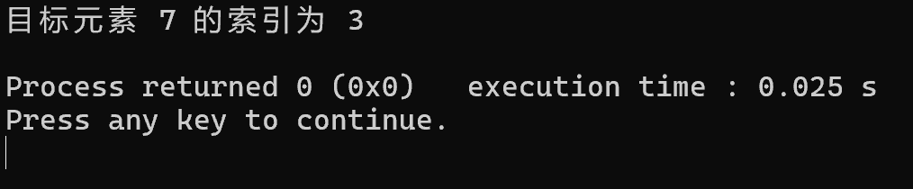 - 如果当前元素等于目标元素,搜索成功,返回当前元素的索引。