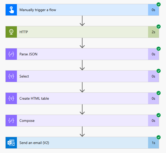 调用Web Api获取的数据经常是json格式的,Power Automate提供了内置的Parse Json action来解析json数据。一个常见的场景是将json数据变成html table,然后通过邮件的形式发送出去,或者也可以将table数据放置到Approval的details中来发送审批请求。