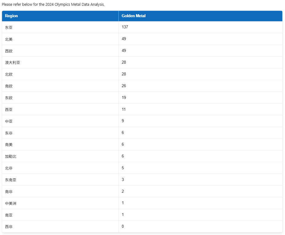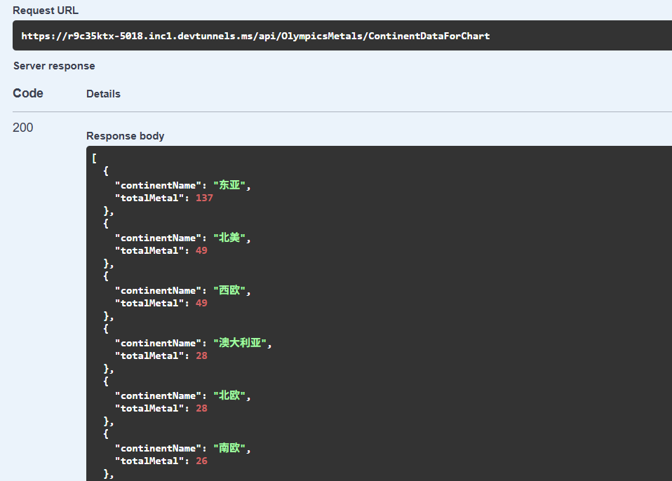 假定已经创建了一个Asp.Net Core Web Api(.NET 9),这个web api提供了一个获取2024年巴黎奥运会各个地区金牌数据的接口,如下图所示,