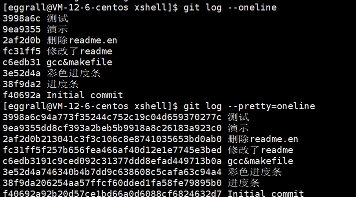 下面的数字就是commit ID我们可以通过commit ID查看以前的版本,进行版本回退等等操作。