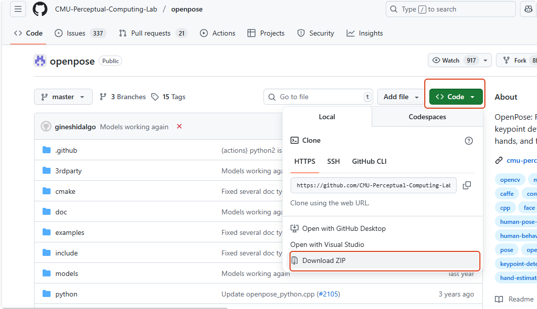 git clone https://github.com/CMU-Perceptual-Computing-Lab/openpose.git