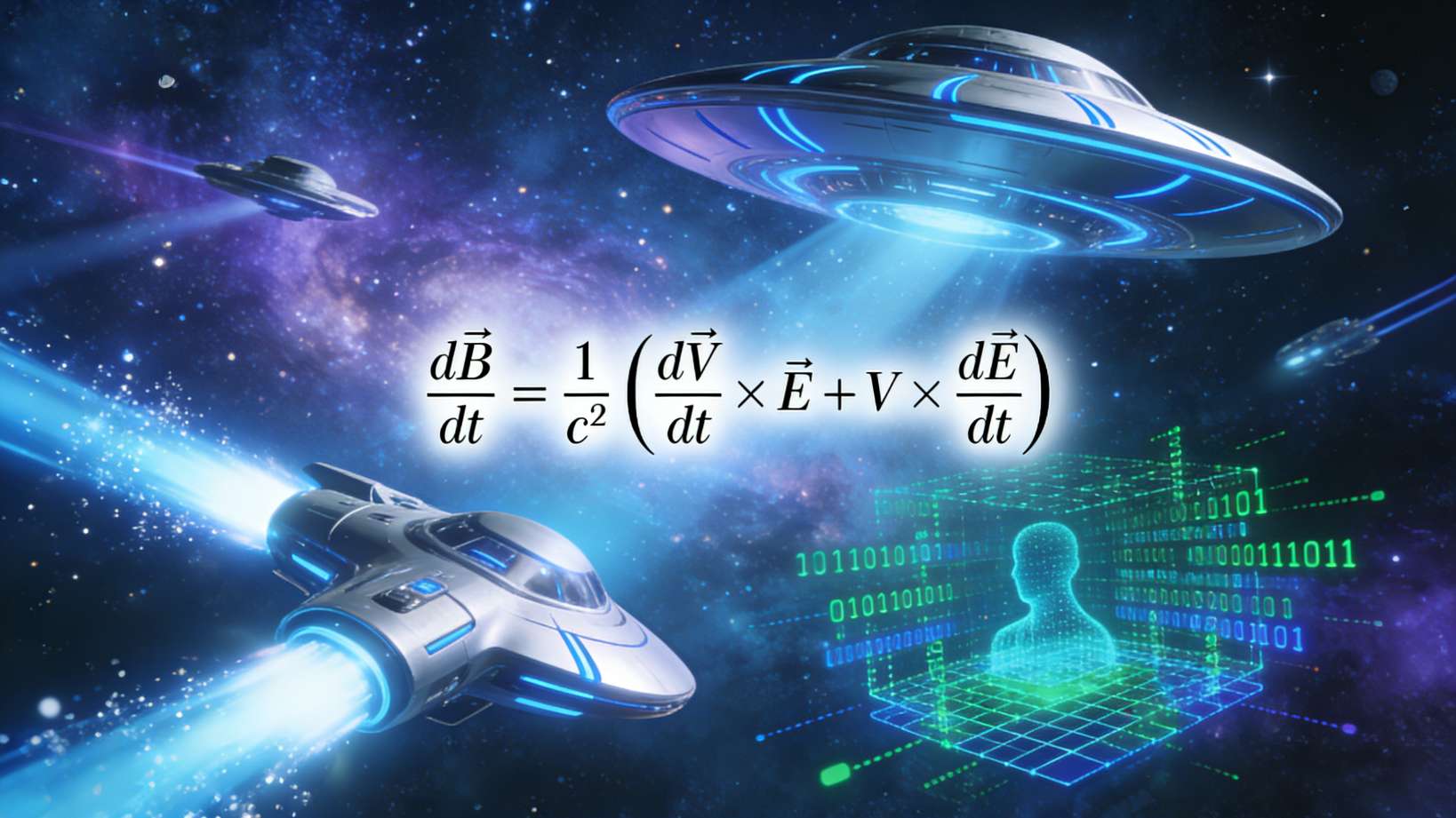 dB⃗dt=1c2(dV⃗dt×E⃗+V⃗×dE⃗dt)\frac{d\vec{B}}{dt} = \frac{1}{c^2} \left( \frac{d\vec{V}}{dt} \times \vec{E} + \vec{V} \times \frac{d\vec{E}}{dt} \right)dtdB =c21(dtdV ×E +V ×dtdE )