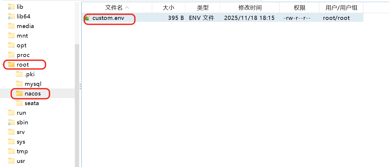 其中需要替换虚拟机地址、数据库用户名、以及数据库密码等信息。修改完成后将其放置在nacos文件中,并上传虚拟机的 root 目录下: